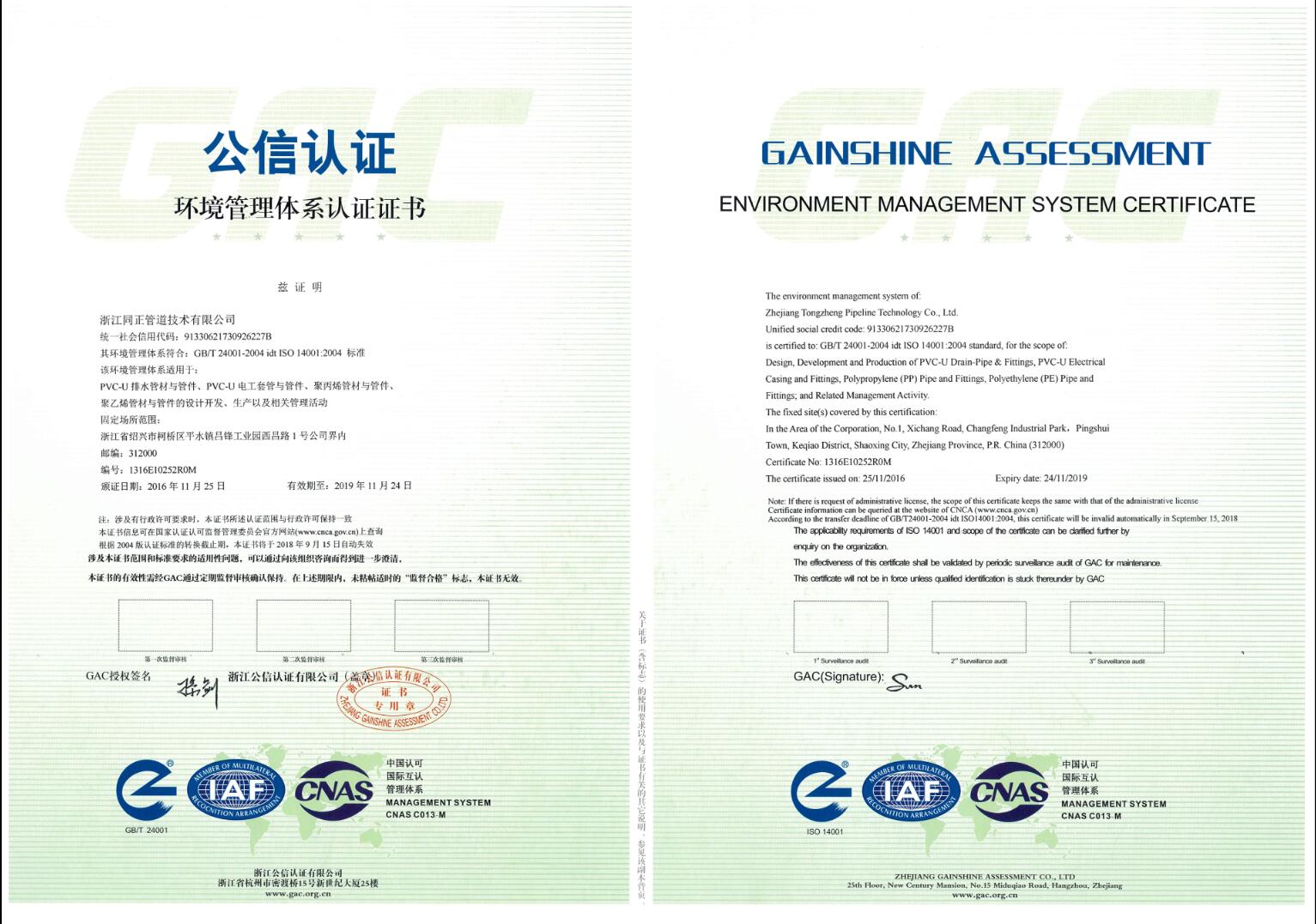 On November 4, 2016, through the approval of a third-party certification body, our company successfully achieved the integration of ISO9001 quality system and ISO14000 environmental system. On the basis of the existing ISO9001 quality management system, we successfully imported the ISO14000 environment system, the operation of the two system can promote us in the pursuit of economic efficiency, strengthen environmental protection and reduce the pollution of the environment. At the same time, through the joint efforts of each department and every staff, to meet the pollutant emission standards, eliminate fire hazards.